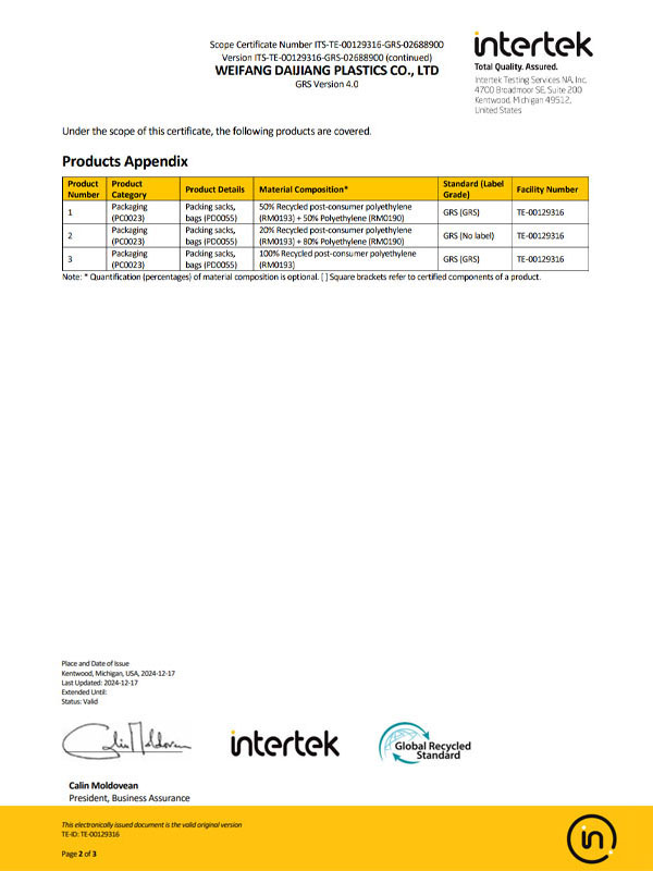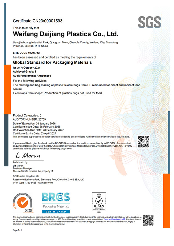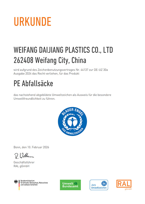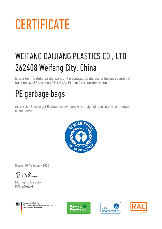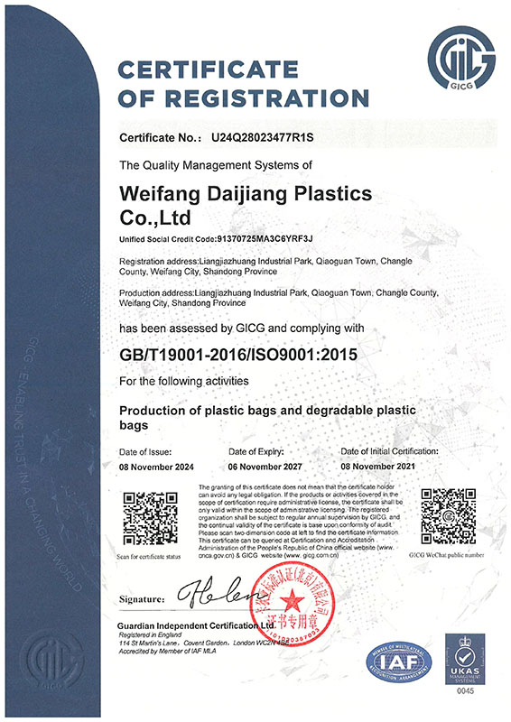 WEIFANG DAIJIANG PLASTICS CO.,LTD was founded in 2016, which is in weifang city Shandong China, we specialize in the production of all kinds of plastic bags and related items . The company enjoys the right of import and export . With the rapid development of the company , we began to invest in industrial enterprises in Weifang city, now we have total of 4 plants with investment is USD1,500,000 and registered assets USD2,000,000. The company covers an area of 35,000 square meters , now there are 200 staffs in the factory and 120 sets of machines which produce all kinds plastic products.